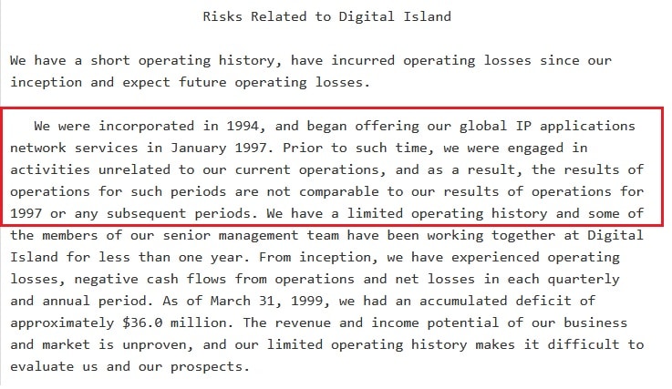 Form S-1 public SEC filing, quoted sentence about “began offering” and “unrelated activities.”