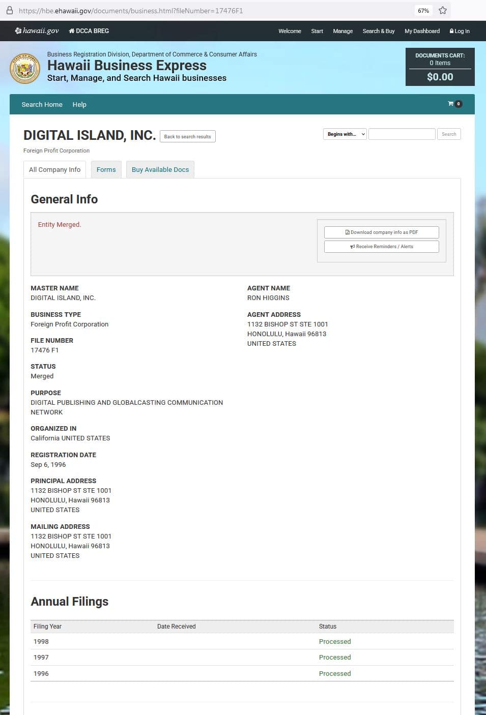 Hawaii registration record for Digital Island, Inc., file number 17476 F1.