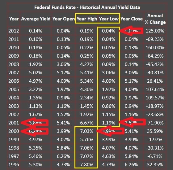 Look at the diagram below to see what happened to the fund rate after 2000. That was an attempt by his successor, Ben Bernanke, to fix Greenspan’s debacle he implemented a 5.84% point drop in 1 year Federal Funds Rate yield during 2001; this was unprecedented behavior in Federal Reserve Bank history.