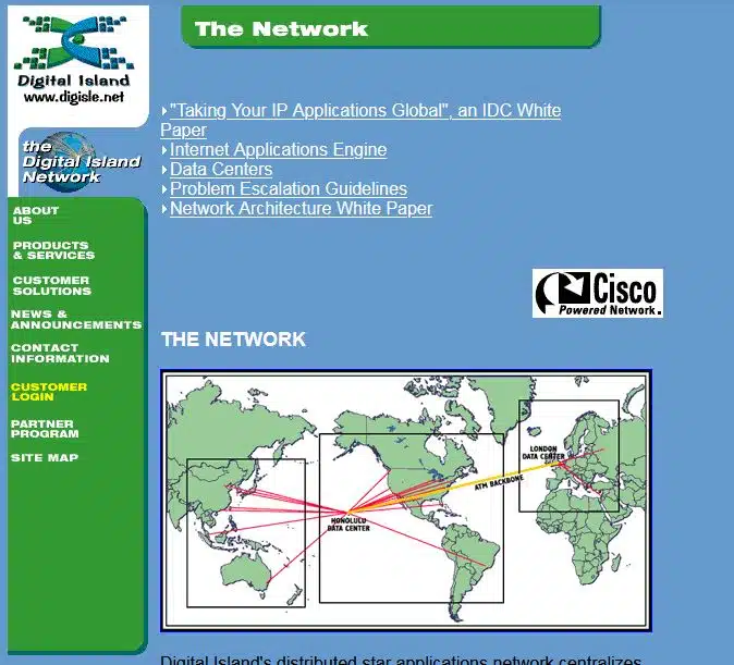 Finally, an image used in 1999 is entirely untrue in depicting the Honolulu data center as having an ATM backbone to routes other than those demarcated through our California facilities. I know this as fact because I ordered the origin and destination of every circuit in our network.